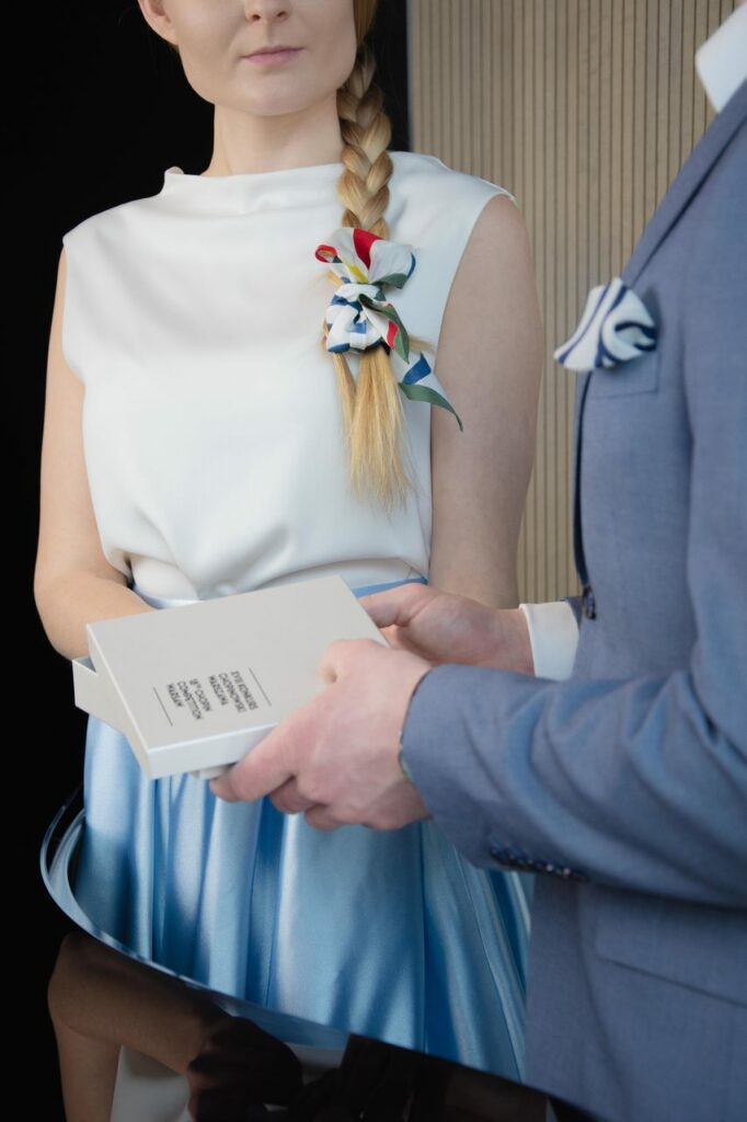 Jedwabne chustki zostały zaprojektowane przez młodą i utalentowaną projektantkę – absolwentkę University of the Arts w Londynie – Maję Koperską, a ręcznie namalowane przez doświadczoną i ogromnie cenioną artystkę – Barbarę Matuszewską-Berg.